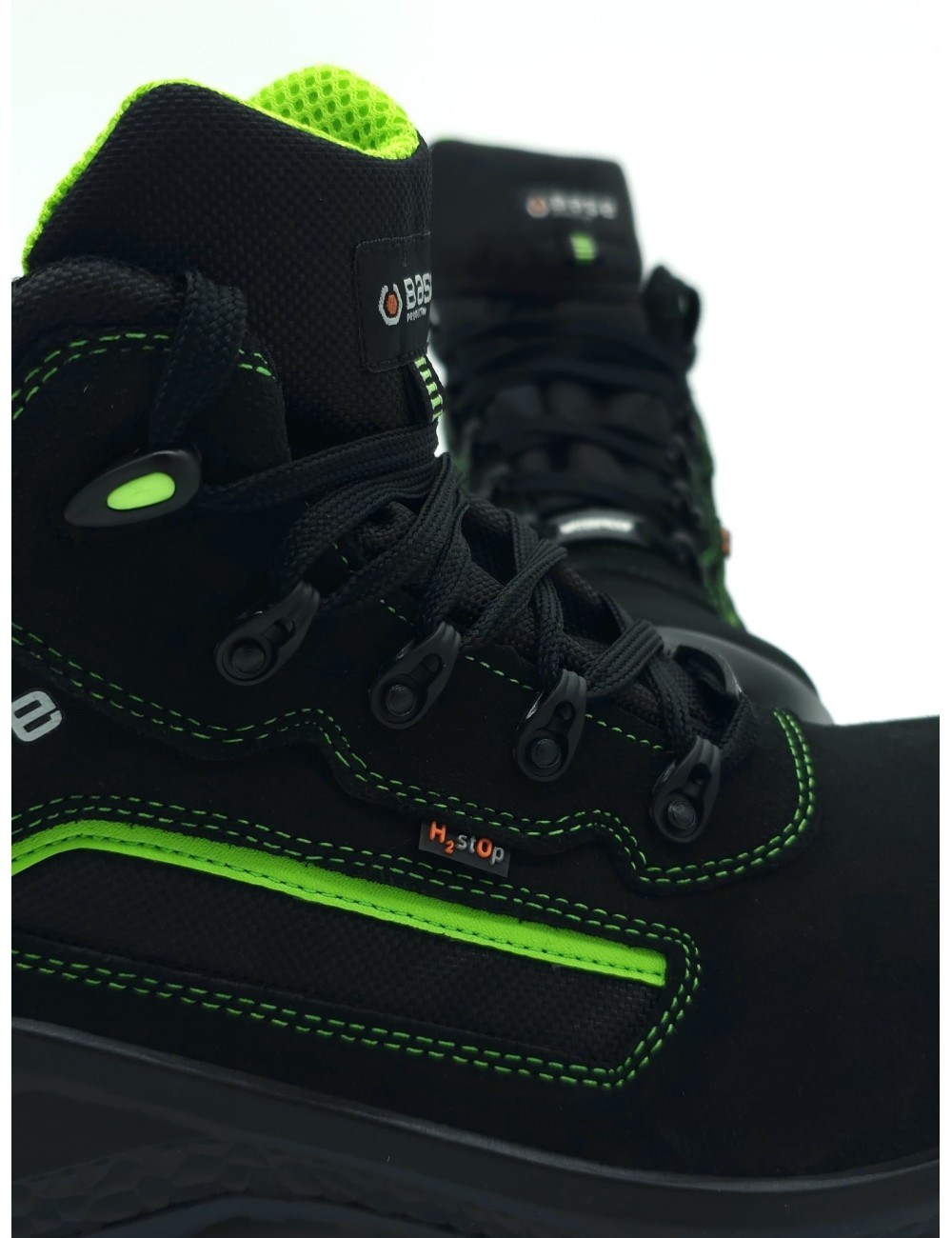 „BASE Be-Powerful S3“ darbo batai yra modernūs darbo batai, kurie tikrai pritrauks akį. Juodi batai su ryškiai žalia apdaila pritrauks visų dėmesį. Jie turi sustiprintas čiurnos ir kulkšnies apsaugas. Siaurėjanti nosis suteikia papildomo komforto. Pradurimams atsparus kompozicinis vidpadis suteikia apsaugą, tuo pačiu išlikdamas labai lankstus ir patogus.