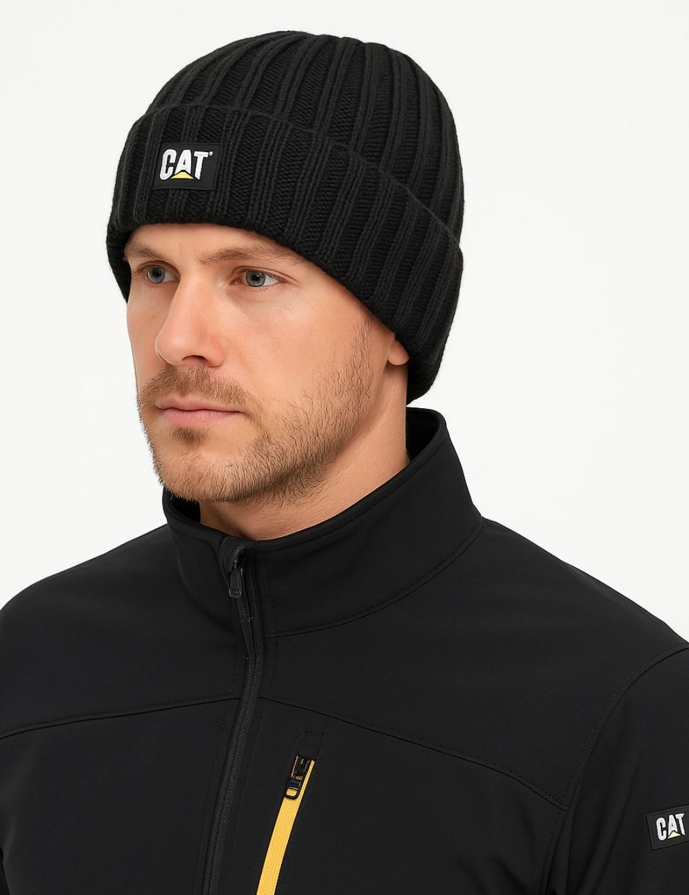 Minkšta žieminė kepurė, puikiai tinkanti šaltesnėms dienoms. Pagaminta naudojant Rib Knit“ technologiją – išskirtinę briaunuotą medžiagą. Priekyje didelis, matomas CAT logo . Medžiaga: 100 % akrilas.