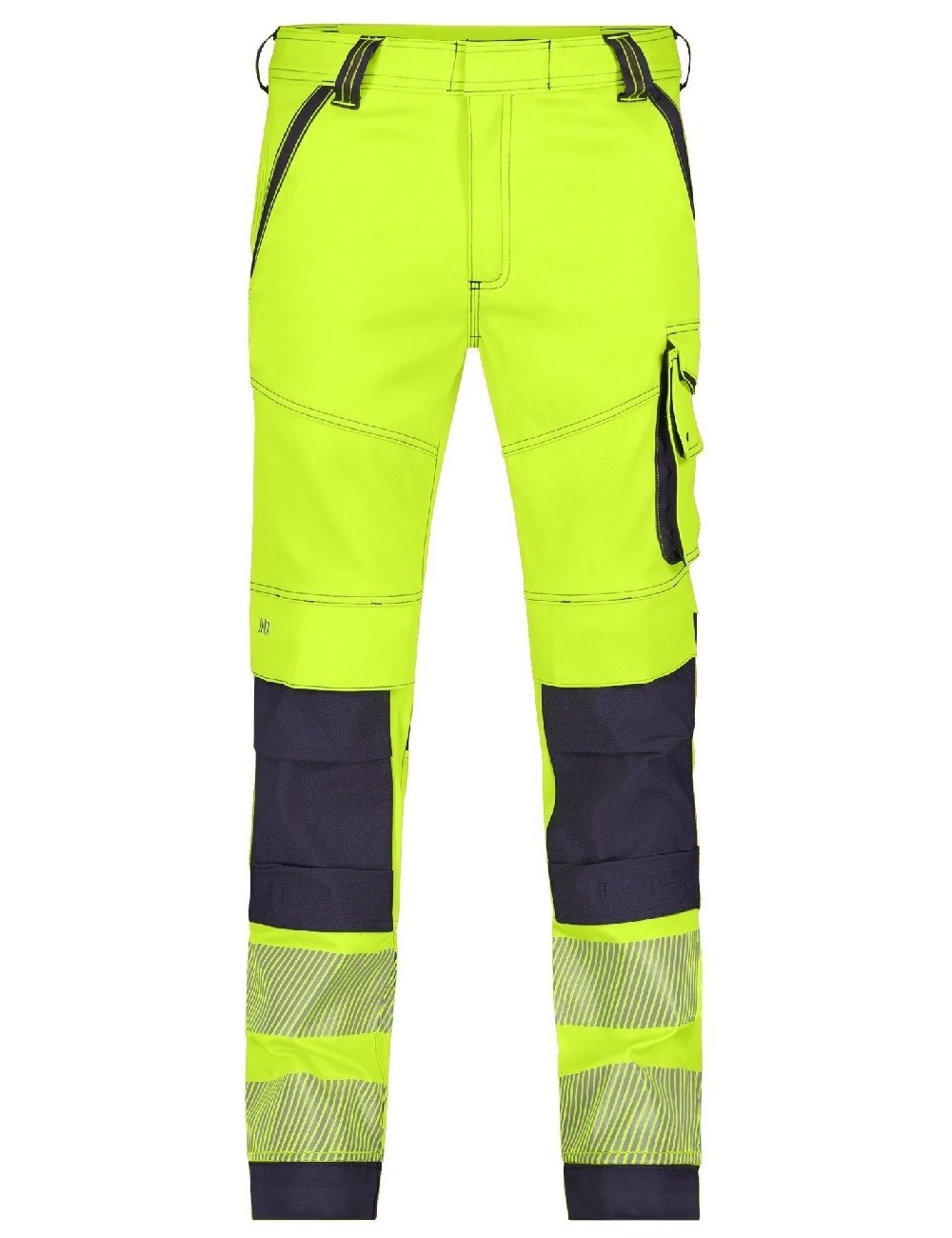 Šios tamprios, ryškių, gerai matomų spalvų darbo kelnės užtikrina puikų matomumą dirbant. Fluorescencinės spalvos su 80 mm pločio atšvaitine juosta užtikrina išskirtinį dėvinčiojo matomumą ir saugumą. Šios aptemptos darbo kelnės pagamintos iš dvikrypčio tampraus audinio, kuris yra lankstus ir puikiai prisitaiko prie kūno. Jos yra itin patvarios – sveria net 270 g/m². Jos sutvirtintos trigubomis kontrastingų spalvų siūlėmis ir plačiu apačia. Jose yra daug praktiškų kišenių, įskaitant reguliuojamas Cordura kelių apsaugas, priekines, galines ir kojų kišenes, taip pat peilio ir liniuotės kišenes. Jose taip pat yra diržo kilpa ir peilio laikiklis. Šios gerai matomos kelnės yra be kenksmingų medžiagų ir sertifikuotos pagal OEKO-TEX Standard 100“.