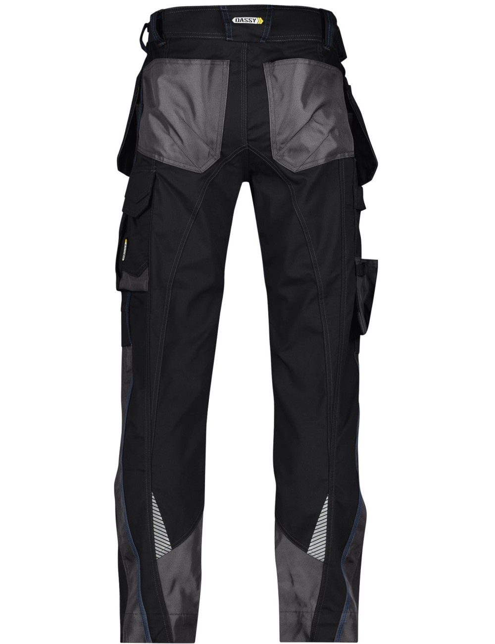 Aukštos kokybės darbo kelnės su moderniu kirpimu ir patraukliomis spalvomis. Aptemptas kirpimas, kišenės ir vandeniui atsparus audinys yra Dassy Magnetic darbo kelnių privalumai.