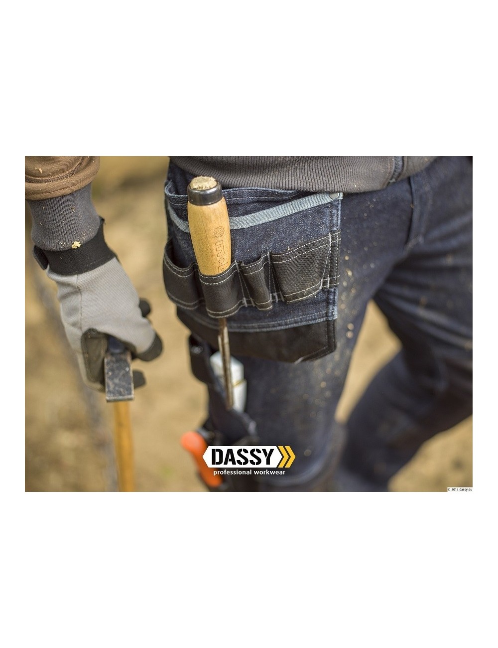 Džinsinės Dassy Melbourne darbo kelnės – tai revoliucija darbo drabužių pasaulyje. Minkštas ir tamprus audinys suteikia išskirtinį komfortą. Aptemptas kirpimas puikiai atrodo ant bet kokios figūros, todėl profesionalai jas vis labiau ieško. Šios kelnės turi visas darbui būtinas savybes: kišenes ant kelių (rekomenduojami to paties gamintojo modeliai), „Cordura“ sutvirtintas dėklines kišenes būtiniausiems aksesuarams. Jose taip pat yra papildomos įrankių kilpos, mažos kišenės, m.in. kišenę telefonui, ir ID laikiklius. Melbourne kelnės užsegamos užtrauktuku ir saga. Trijų adatų siūlės užtikrina išskirtinį patvarumą. Šios darbo kelnės yra būtinas daiktas kiekvienam profesionaliam darbo drabužių entuziastui.