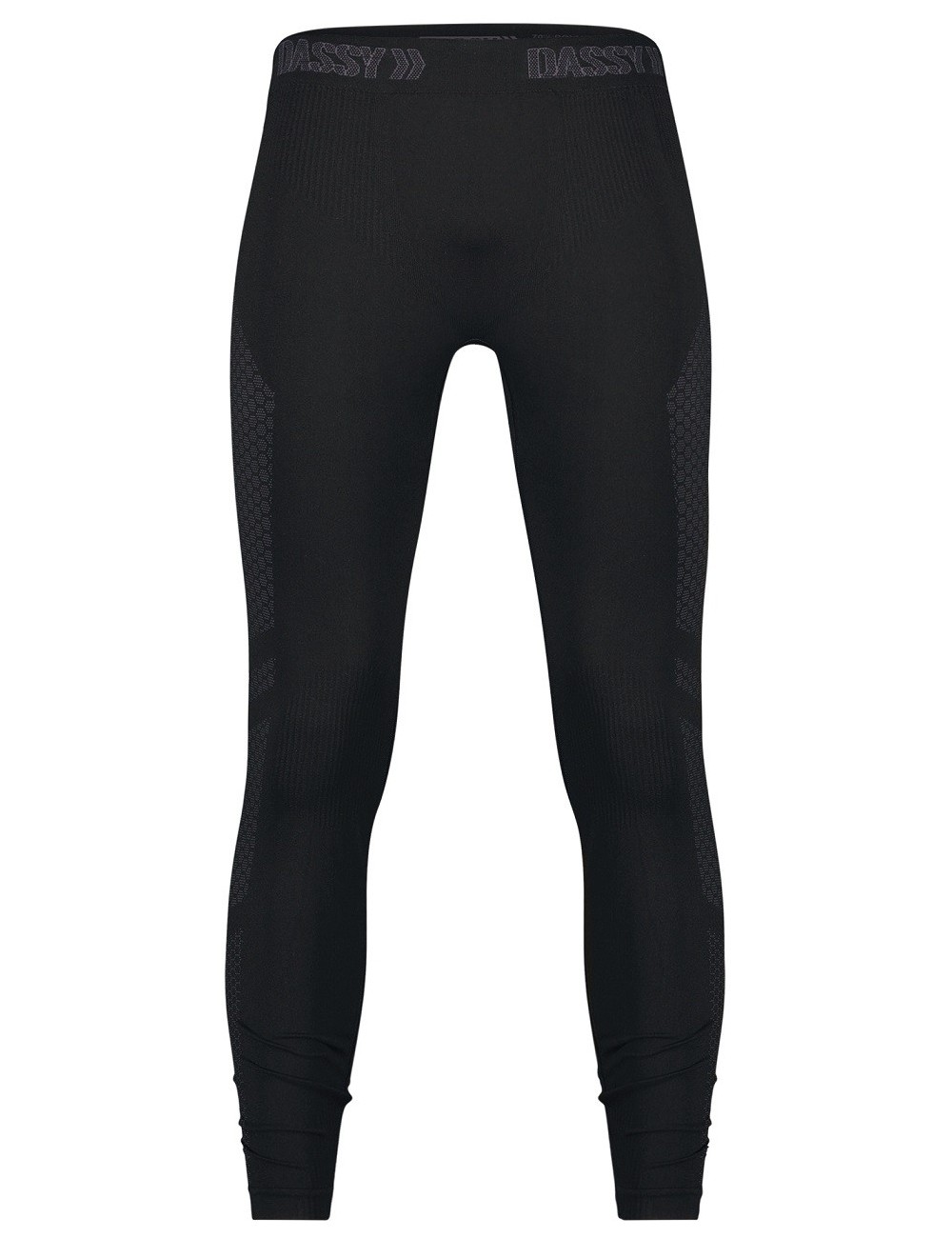 Dassy Pascal termo kelnės puikiai tinka šaltoms dienoms. Dėl besiūlės technologijos jos nesukelia trinčių ar dirginimo. Lengvas dizainas garantuoja puikų kvėpavimą ir šiluminį komfortą. Jos nevaržo judesių. Panaudota medžiaga pasižymi antibakterinėmis savybėmis, mažinančiomis nemalonius kvapus. Šios vyriškos kelnės turi vėdinimo zonas tose vietose, kurios linkusios labiausiai prakaituoti. Jos greitai džiūsta. Jos puikiai priglunda prie kūno, nevaržo judėjimo laisvės ir užtikrina aukštą komfortą. Dassy Pascal kelnės yra visiškai saugios. Jos buvo patikrintos dėl kenksmingų medžiagų pagal OEKO-TEX 100 Standard .