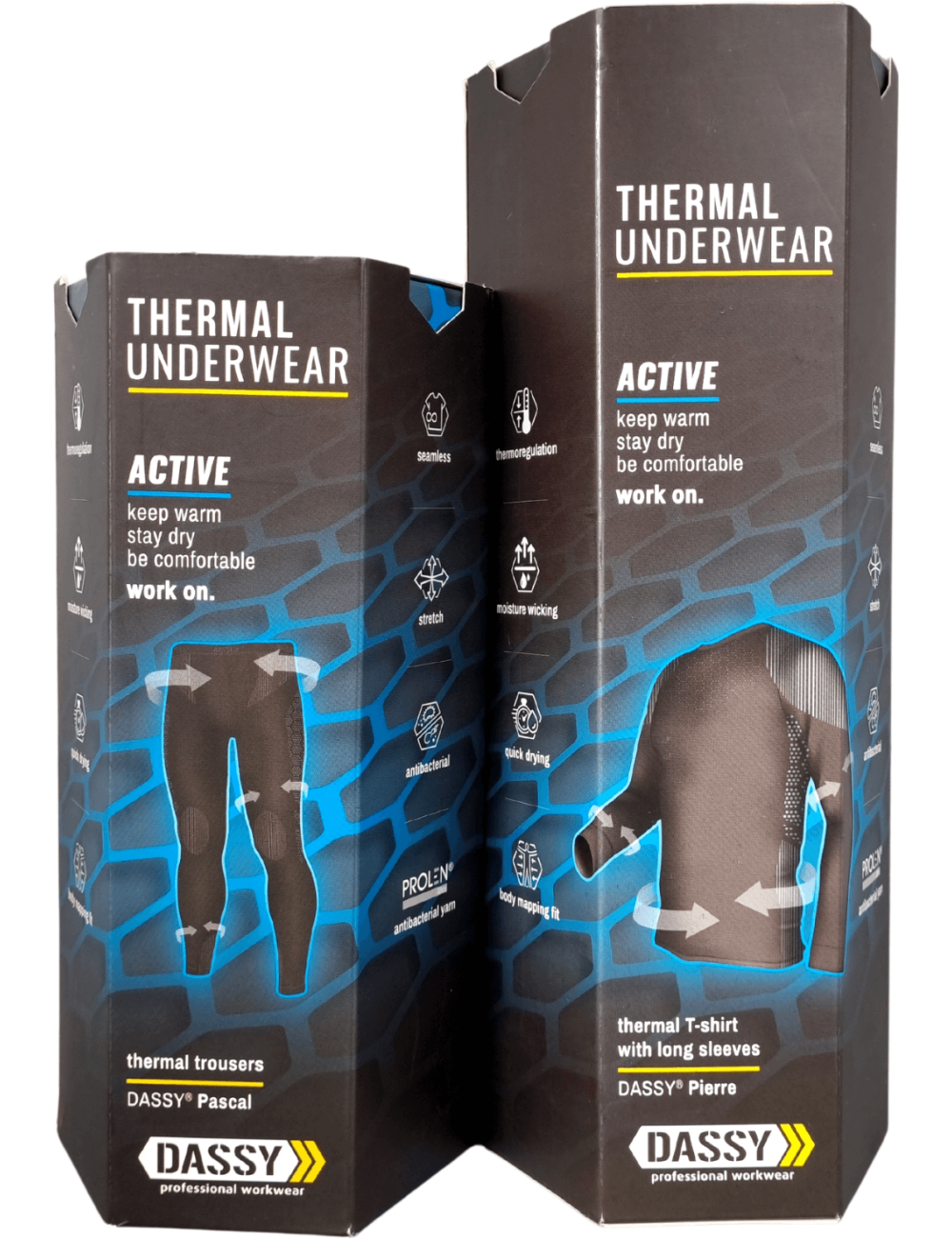 Termo komplektas, skirtas dideliam fiziniam aktyvumui, t. y. intensyviam darbui net ir esant žemai temperatūrai. Termo komplektas yra būtinas žiemą. Jis puikiai apsaugo nuo šalčio, efektyviai sugeria drėgmę ir apsaugo nuo prakaito. Pamirškite storas striukes, kurios varžo judesius! Mes jums paruošėme jau paruoštą komplektą, kurį sudaro ilgarankoviai termo marškinėliai ir termo kelnės.