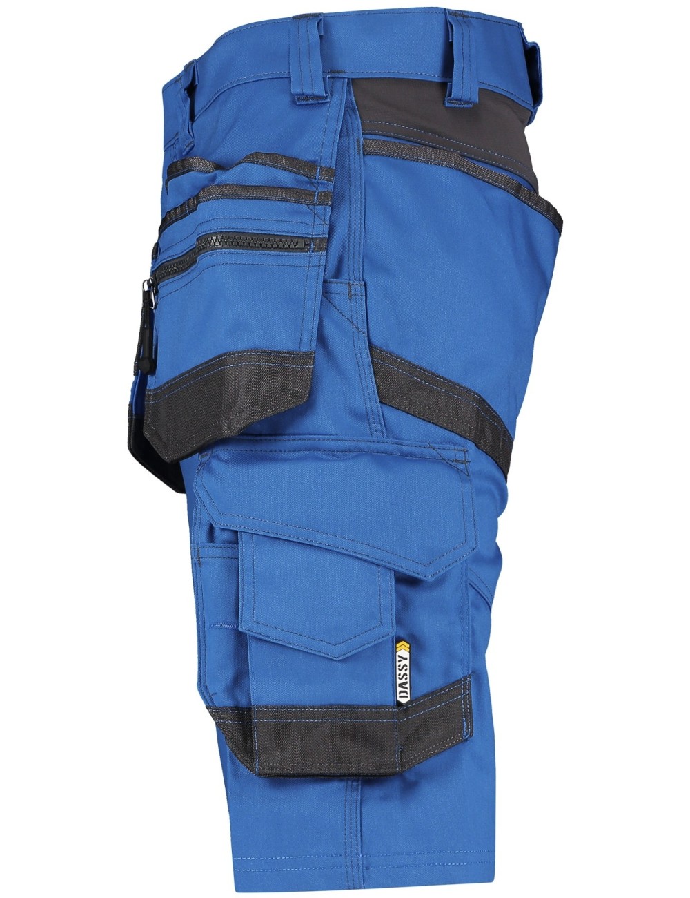 Dassy Trix darbo šortai yra nepakeičiamas vasaros darbo drabužių pasirinkimas. Šie itin patvarūs šortai pagaminti iš 65 % poliesterio ir 35 % medvilnės mišinio, o jų svoris – 245 g/m². Patvari medžiaga yra tampri iš visų keturių pusių ir buvo patikrinta dėl kenksmingų medžiagų pagal OEKO-TEX ® 100 Standard . Trix Dassy užtikrina papildomą patvarumą. Šortai pasižymi žemu juosmeniu ir aptemptu kirpimu. Jie turi elastingą juosmens juostą patogumui. Šie darbo šortai užsegami užtrauktuku ir paslėpta saga. Jie turi daugybę praktiškų kišenių svarbiausiems darbo įrankiams laikyti, m.in. užtraukiamą kišenę, dvi dideles priekines įrankių kišenes, dvi galines kišenes ir vieną šoninę kišenę ant kojų.