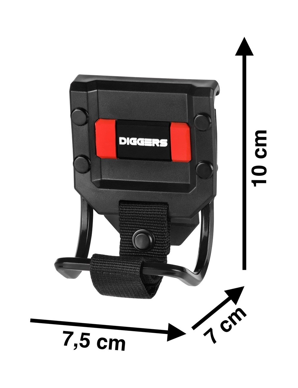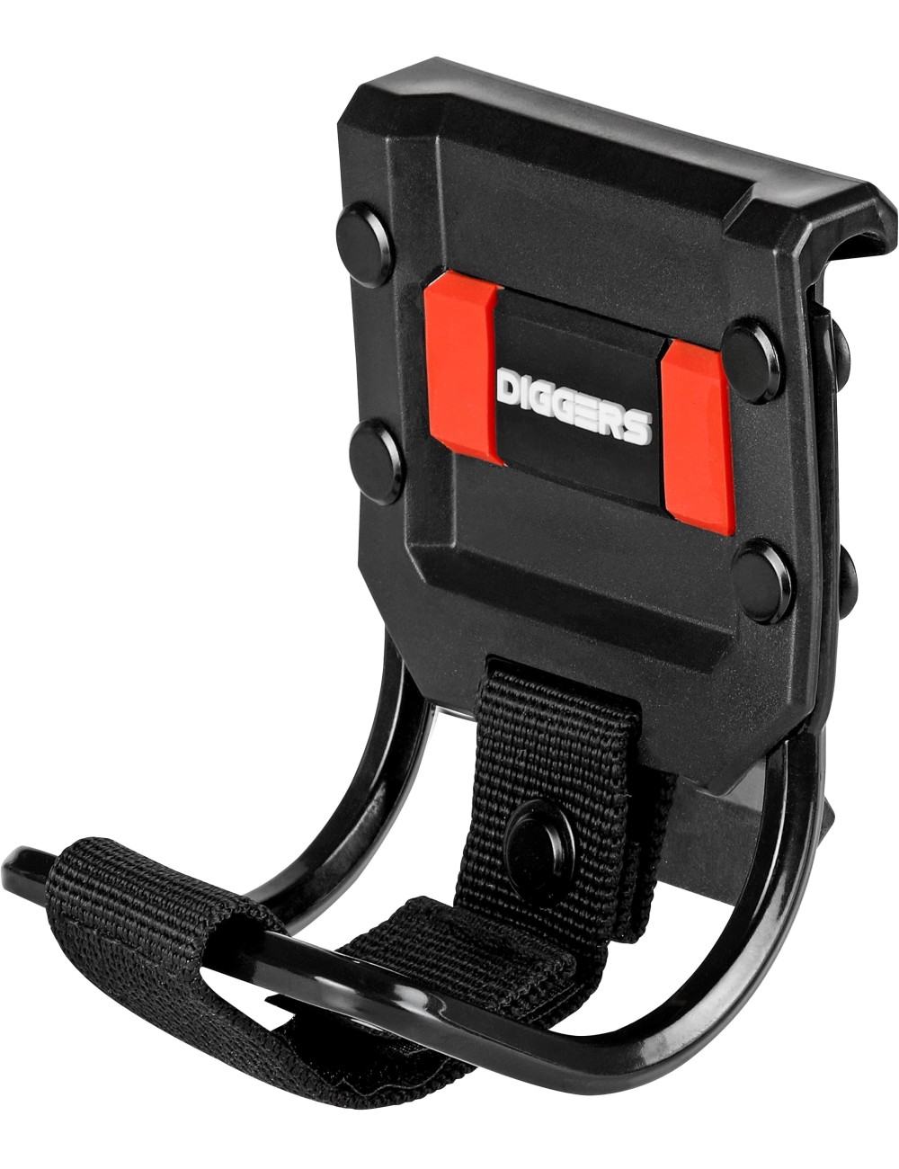 „ Diggers plaktuko laikiklis Diggers Hammer Loop yra nepakeičiamas įrankių diržo ar įrankių krepšio priedas. Laikiklis pagamintas iš didelio stiprumo metalo ir ABS plastiko, pritvirtintas plieninėmis kniedėmis. Laikiklis tvirtinamas labai tvirta ir patvaria sagtimi. Jis tinka visų tipų įrankių diržams ir veikia su visų tipų plaktukais. Laikiklis turi „Velcro“ dirželį, kurį galima naudoti, pavyzdžiui, atsuktuvo laidui ar kitam įrankiui laikyti.