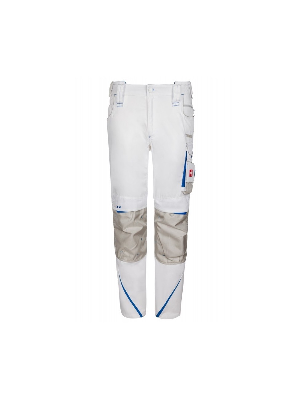 Patogios, funkcionalios ir modernios kelnės iš Engelbert Strauss es motion 2020 kolekcijos. Ergonomiškas kirpimas dera su sportišku ir moderniu siluetu. Išskirtinis šio modelio bruožas – elastinga juosmens juosta su Flexbelt sistema – patogia juosmens sistema, užtikrinančia puikų lankstumą ir komfortą. Kelnės yra labai patvarios, su trigubomis siūlėmis vidinėje kojų pusėje. Plačios diržo kilpos su „Velcro“ užsegimais. Kelnės turi daugybę kišenių: dvi šonines ir dvi „Cordura“ sustiprintas galines kišenes. Be to, kelnės turi sustiprintą ir funkcionalią kišenę liniuotei, kišenę mobiliajam telefonui ir daugiaskyrę kišenę ant šlaunų. Kelnės turi ventiliacijos angas abiejose užpakalinėse šlaunyse, užsegamas oranžiniais užtrauktukais ties čiurna. Svarbiausias šio modelio bruožas – kišenės nuomojamoms kelių apsaugoms, užsegamos viršuje „Velcro“ juosta. Keliai sutvirtinti „Cordura“, kad kelnės būtų dar atsparesnės mechaniniams pažeidimams ir dėvėjimuisi. Subtilūs šviesą atspindintys elementai per visą kelnių ilgį geresniam matomumui sutemus.