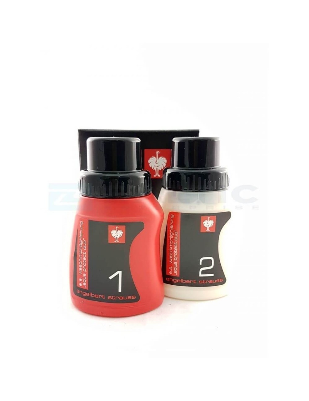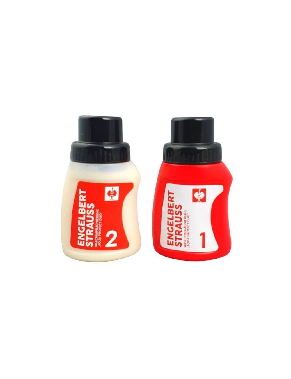 Engelbert Strauss drabužių hidroizoliacijos rinkinys, kuriame yra „aqua duo 1“ ir „aqua duo 2“ hidroizoliacinės medžiagos. Efektyvi hidroizoliacija skalbimo mašinoje skalbiamiems drabužiams. Tinka džinsams, kelnėms, džemperiams, darbo striukėms ir minkštiems striukėms. Hidroizoliuoti galima bet ką! Ypač rekomenduojama vėjui ir vandeniui atsparioms striukėms bei kelnėms, užtikrinant nuolatinę apsaugą ir apsaugą nuo permirkimo. Išlaiko vandens atsparumą, kartu laidumą orui. Efektyvi apsauga nuo purvo, alyvos, dulkių ir dėmių. Abiejų produktų talpa yra 150 ml. Pakanka maždaug 4 kg skalbinių hidroizoliacijai. Ekologiška.