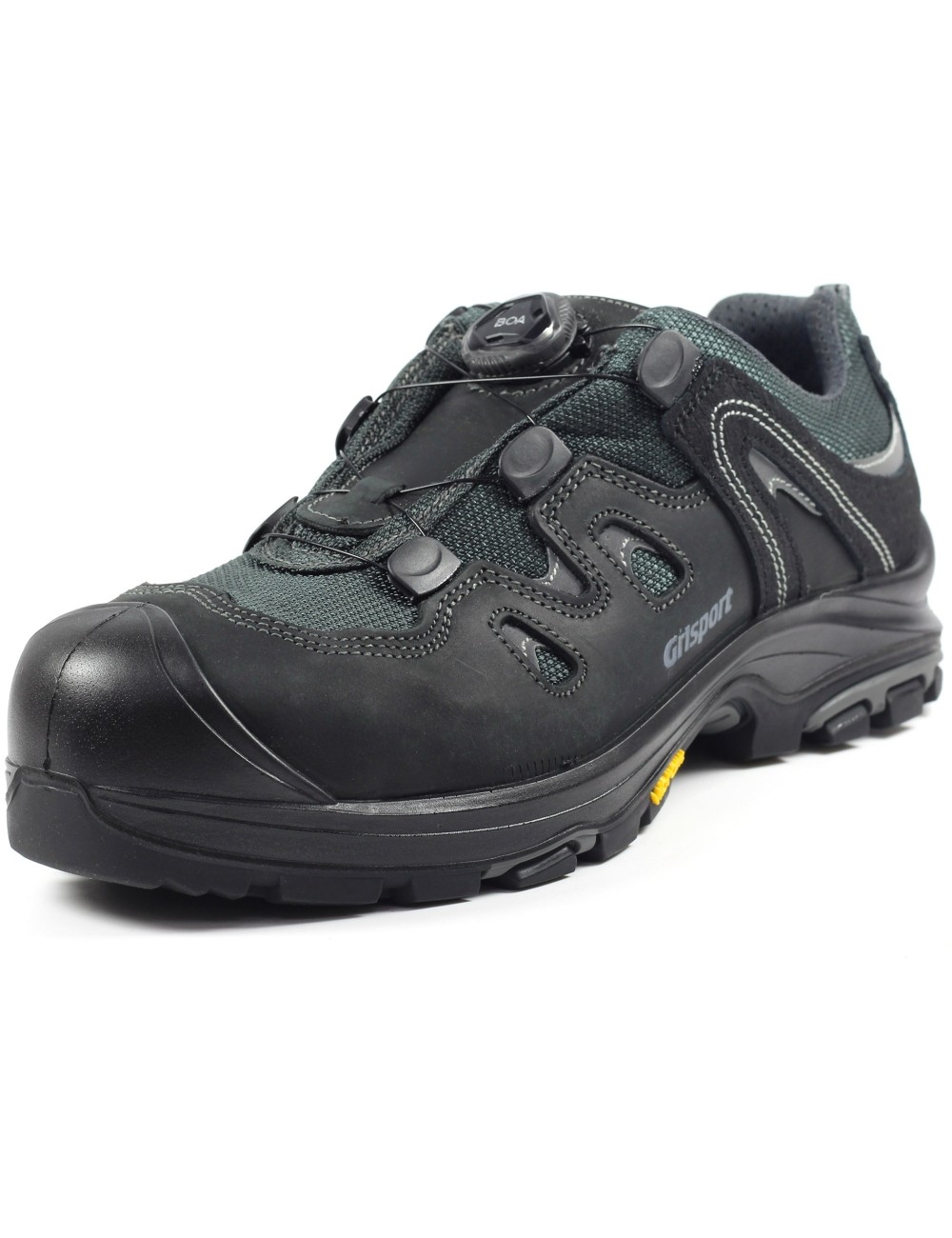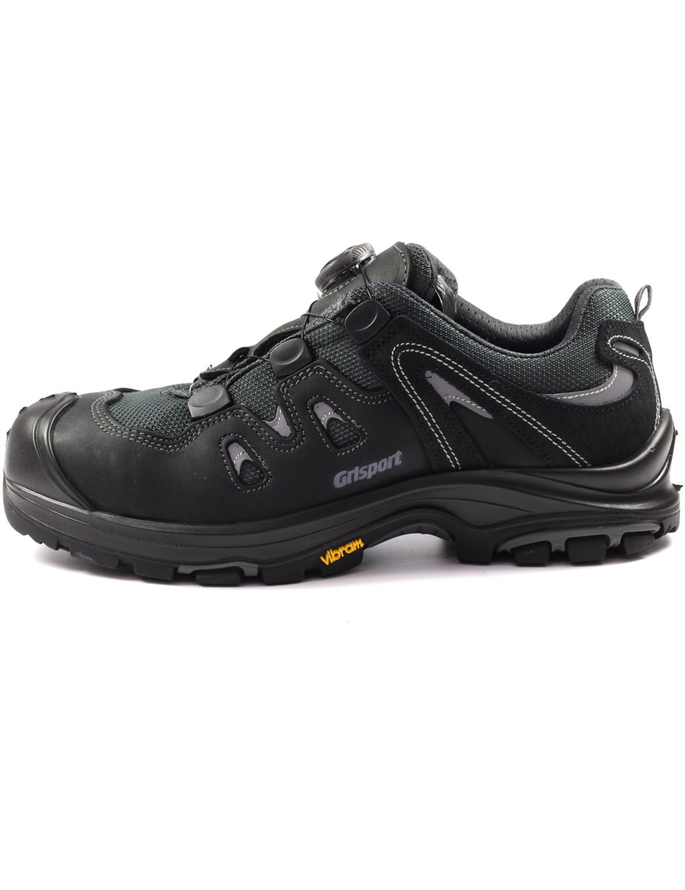 Labai patvarūs Grisport Imola darbo batai su S3 apsauga. Pagaminti iš aukštos kokybės alyvuotos Dakar karvės odos, jie turi pradūrimui atsparų vidpadį ir plieninę nosį, kad būtų užtikrintas saugumas dirbant. „Vibram“ padas, žinomas iš alpinizmo ir žygių avalynės, pagerina sukibimą, puikiai sugeria smūgius ir stabilizuoja pėdą. Jis atsparus trinčiai, slydimui ir alyvai. Jis efektyviai prailgina batų tarnavimo laiką, sumažina nuovargį ir padidina naudotojo saugumą. Šie vyriški batai taip pat turi modernią BOA raištelių sistemą, kuri leidžia greitai ir lengvai apsiauti ir nusiauti batus. Reguliuojamas ratukas vietoj tradicinių raištelių užtikrina tolygų ir stabilų prigludimą. Šis modelis atitinka EN ISO 20345:2011 – UNI EN ISO 20345:2012, S3, SRC standartų reikalavimus.