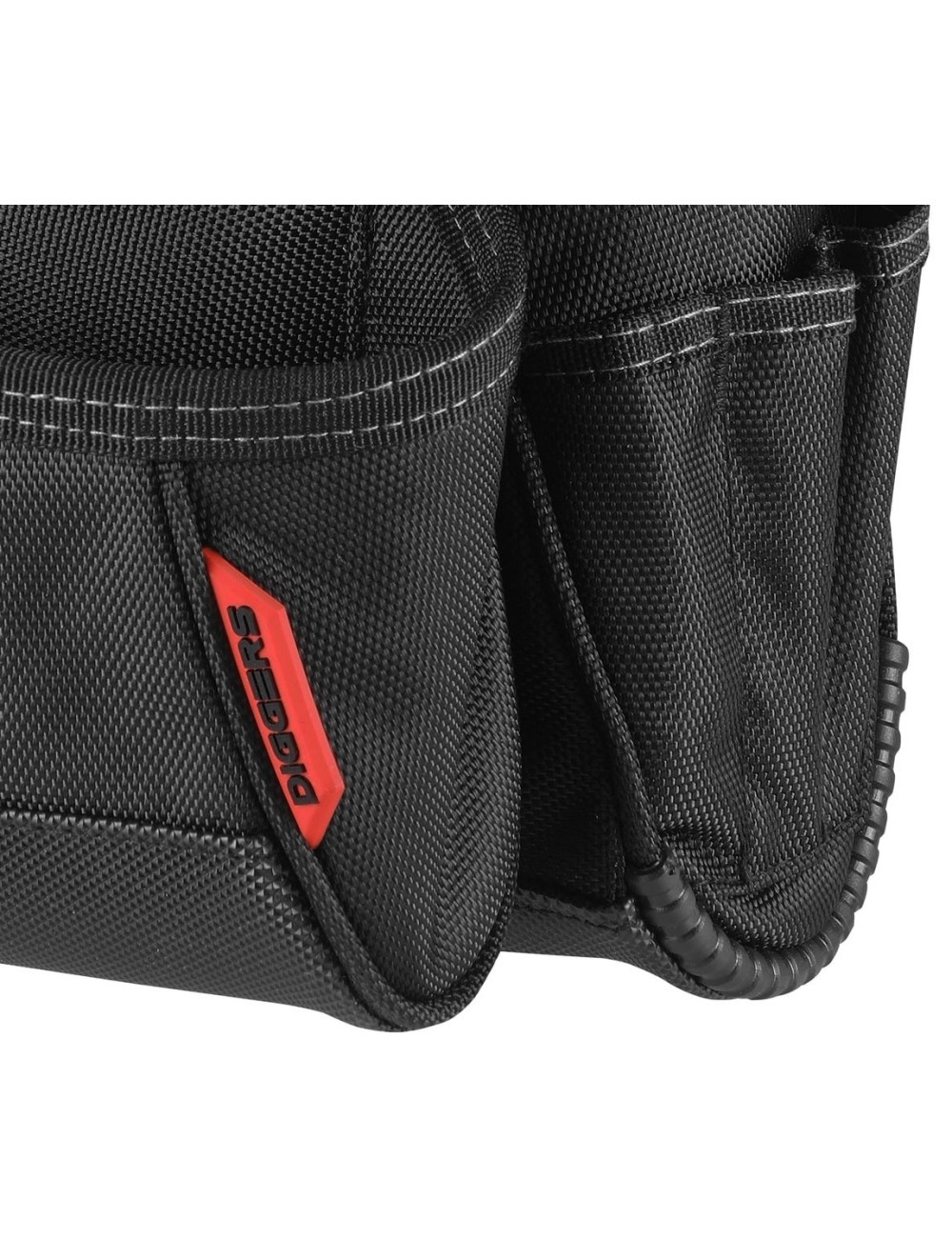Diggers Contractor Pouch pagamintas iš aukštos kokybės medžiagos. Sutvirtintas patvariomis kniedėmis, jis idealiai tinka net ir atšiauriausioms darbo sąlygoms. Jame yra daug kišenių ir laikiklių, įskaitant dvi dideles kišenes, nešiojamojo kompiuterio skyrių ir tvirtą plaktuko laikiklį. Jį galima naudoti vieną arba su įrankių diržu. Pritvirtinti prie diržo greita ir paprasta dėl Quick Click tvirtinimo sistemos. Tiesiog pritvirtinkite sagtį prie diržo naudodami patvarią spaudę.
