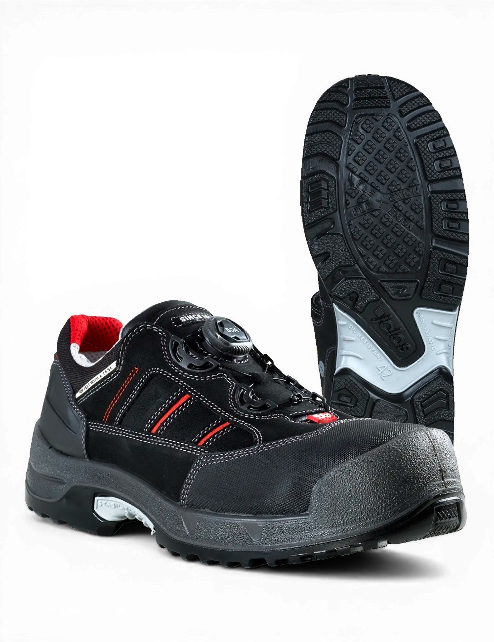 - Antistatiniai ir ESD suderinami – batai atitinka IEC 61340-5-1 reikalavimus, todėl padeda sumažinti elektrostatinę iškrovą.