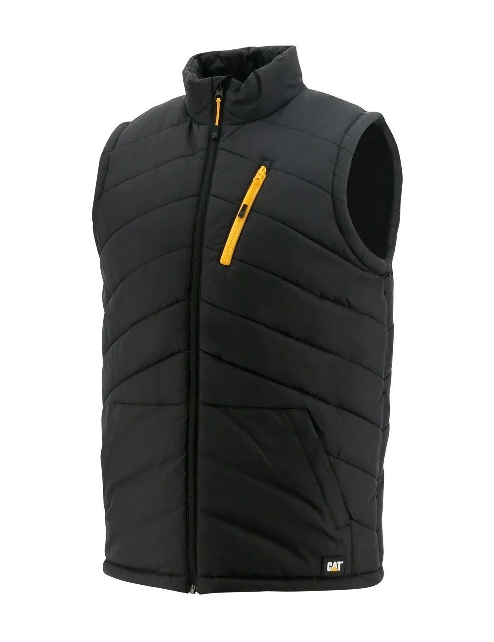 Bezrękawnik CAT Essential wykonany został w 100% z solidnego, nylonowego materiału ripstop o bardzo wysokiej gramaturze aż 320 /m2, dzięki czemu jest niezwykle wytrzymały. Wygodny fason z wysoką stójką zapewnia doskonałą ochronę przed chłodem oraz komfort. Kamizelka robocza zapinana na zamek błyskawiczny. Wyposażona jest w dwie kieszenie boczne, kontrastową, zasuwaną kieszeń na piersi oraz wewnętrzną kieszeń z zapięciem na rzep. Bezrękawnik męski ozdobiony jest silikonową naszywką z logiem marki CAT. Prosty design produktu sprawia, że może być on używany w pracy, jak i poza nią.