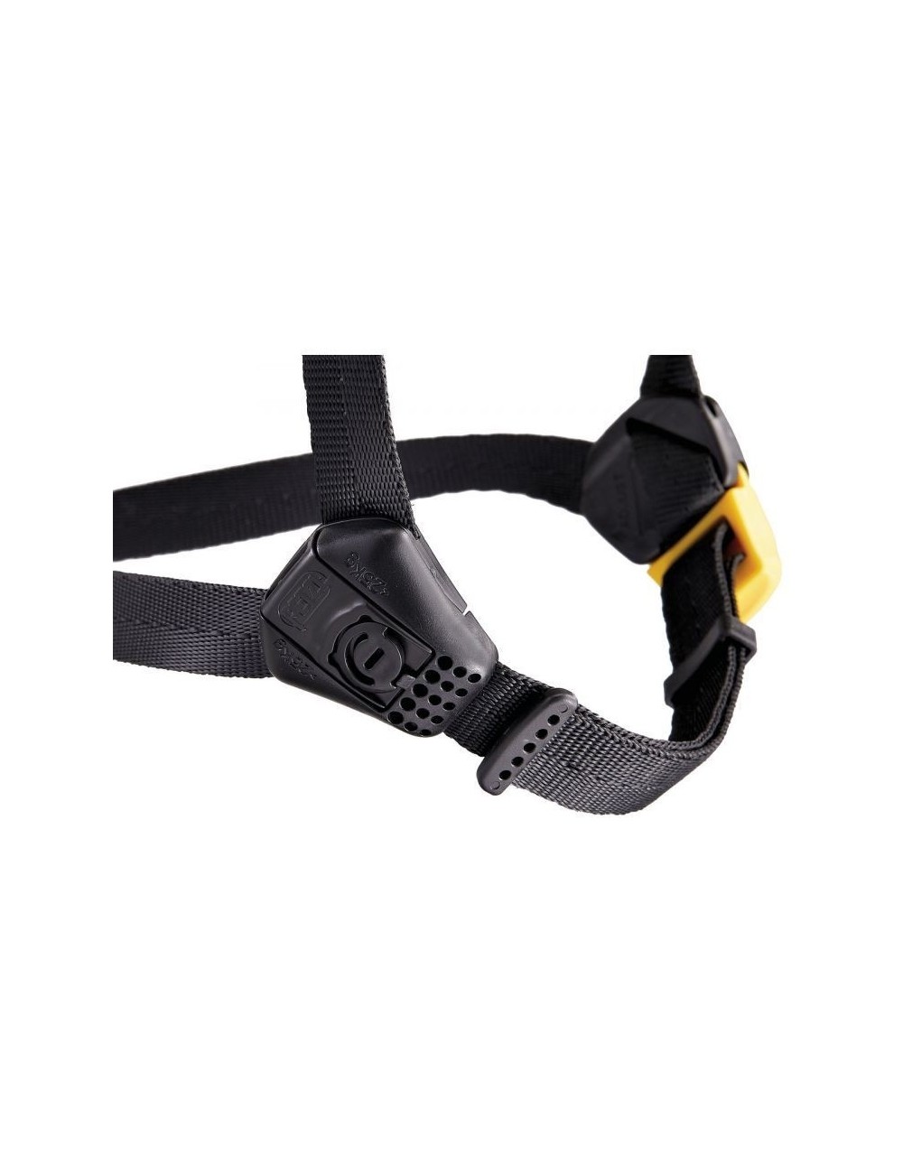 Profesjonalny kask ochronny Petzl Vertex Vent o uznanej renomie wśród pracowników wysokościowych z dodatkowymi otworami wentylacyjnymi i paskiem podbródkowym z zapięciem czteropunktowym.