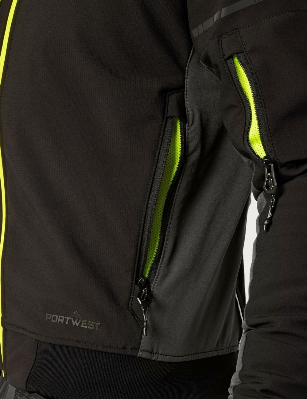 Kurtka techniczna softshell Portwest EV464 z nowej kolekcji EV stworzonej z myślą o wymagających użytkownikach odzieży premium. Wykonana z funkcjonalnego materiału, który jest wiatroszczelny, oddychający i ma właściwości wodoodporne. Kurtka inspirowana odzieżą sportową i outdorową. Wstępnie profilowane rękawy, krój slim fit oraz ciekawe, kontrastowe połączenia kolorów. Łokcie i rękawy wzmocnione dodatkową warstwą solidnego materiału - zapobiega przecieraniu się softshellu i powstawaniu niechcianych dziur. Kurtka wyposażona w masę praktycznych kieszeni, schowków i uchwytów. Naszym zdaniem bardzo dobrze wykonana, funkcjonalna i dobrze wyglądająca kurtka softshell.