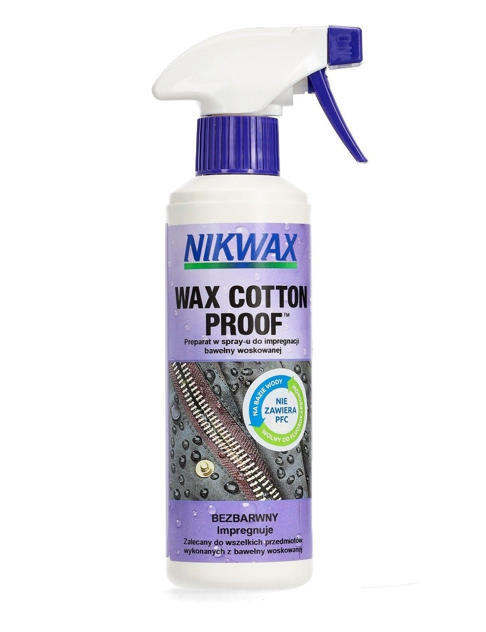 Nikwax Wax Cotton Proof praktiškame ir patogiame dozatoriaus buteliuke leidžia greitai ir efektyviai apsaugoti medvilninius drabužius nuo vandens. Jis skirtas vaškuotiems medvilniniams drabužiams. Jis suteikia ir atgaivina atsparumą vandeniui, tuo pačiu atnaujindamas drabužių išvaizdą net ir po ilgo naudojimo. Jis taip pat pagerina audinio laidumą orui. Nikwax Wax Cotton Proof atsparumo vandeniui procesas yra neįtikėtinai greitas ir paprastas. Tiesiog gausiai apipurkškite drabužį ir įtrinkite šluoste arba kempine. Atsparumas vandeniui yra visiškai saugus sąlytyje su oda. Talpyklos dydis: 300 ml.