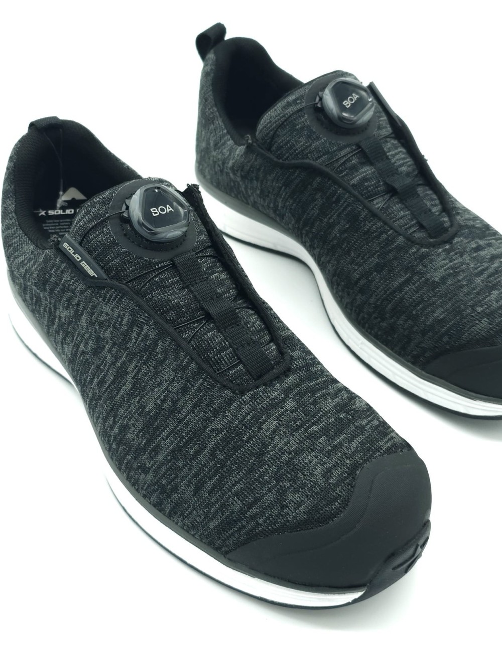 Solid Gear Haze Moon to obuwie ochronne o sportowym wyglądzie. Lekka, bezszwowa cholewka StarKnit świetnie dopasowuje się do kształtu stopy i zapewnia dobrą cyrkulację powietrza. Podeszwa środkowa wykonana jest z pianki EVA o podwójnej gęstości, dzięki czemu półbuty robocze zapewniają komfort użytkowania na wysokim poziomie. Gumowa podeszwa zewnętrzna ma właściwości antypoślizgowe i jest odporna na olej. W butach roboczych zastosowano ułatwiający wiązanie system BOA® Fit. Dodatkowo półbuty robocze wyposażone są w innowacyjny podnosek Nano, który jest o wiele mocniejszy od podnosków z włókna szklanego oraz we wkładkę antyprzebiciową, dzięki czemu zapewnią wysoką ochronę przed urazami. Obuwie robocze spełniają wymagania norm EN ISO 20345:2011 S1P, SRC.