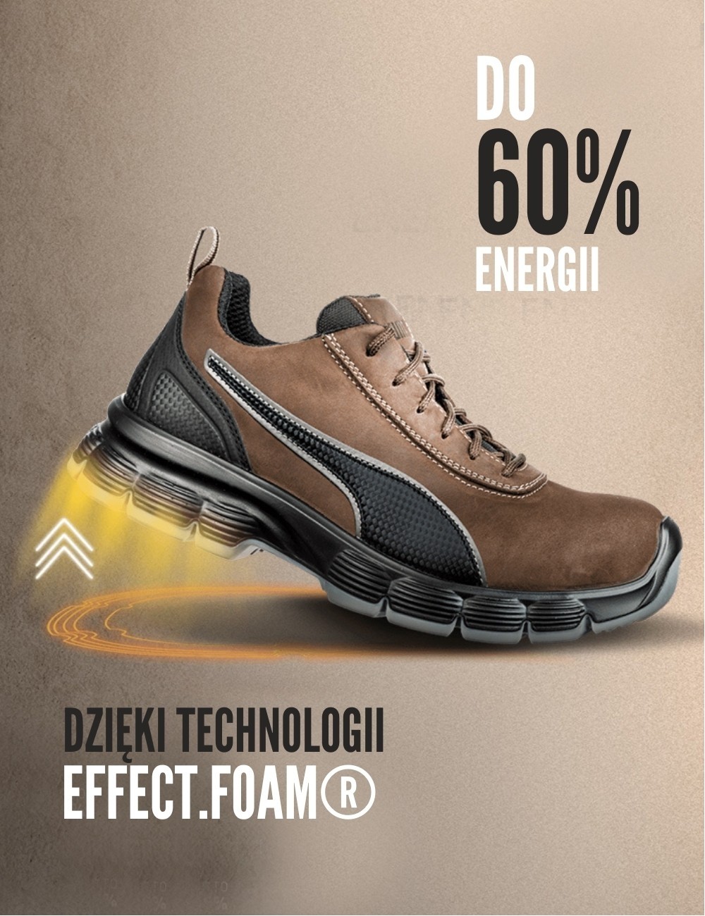 Puma Condor pagamintas iš nubuko odos, skirtas lengvesniems darbams, pavyzdžiui, priežiūros, transportavimo ir sandėliavimo darbams. Dėl efektyvaus EFFECT.FOAM® pado amortizavimo jis idealiai tinka pramonės šakoms, kurioms reikia daug kasdienių žingsnių. Pado konstrukcijos technologija efektyviai sugeria energiją einant, sumažindama spaudimą stuburui ir sąnariams. Condor – tai S3 apsaugos klasės batas su apsaugine pirštų apsauga ir lengvu, lanksčiu vidpadžiu, kuris apsaugo pėdą nuo pradūrimų. Batas atitinka visus reikiamus saugos standartus ir yra sertifikuotas ESD – tai batai, apsaugantys nuo statinės elektros.