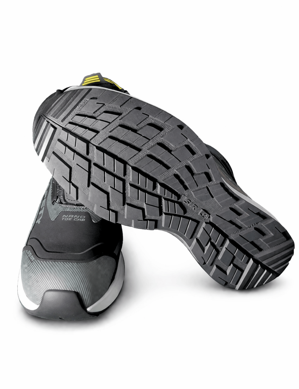 - Kompozitinė stiklo pluošto pirštų apsauga – apsaugo pirštus nuo smūgių ir spaudimo, išlaikant ploną, ergonomišką avalynės profilį.