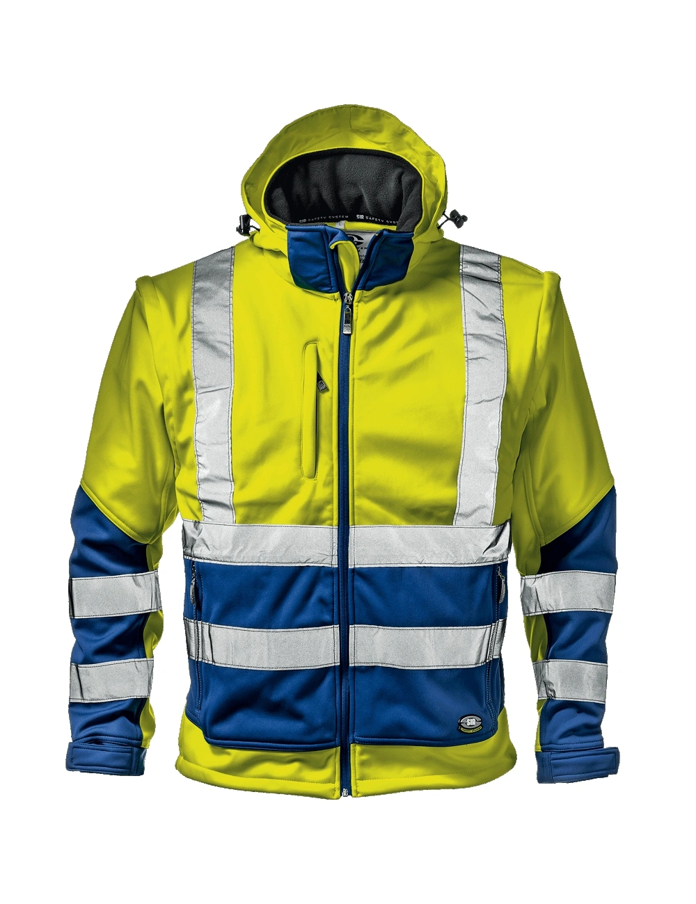 Sir Safety Starmax Reflective softshell striukė – puikus sprendimas tiems, kuriems reikia gerai matomų apsauginių drabužių. Pagaminta iš 100 % poliesterio su papildomu TPU lietpalčiu ir sujungta su mikroflisu, ji užtikrina puikią izoliaciją ir komfortą. Striukė yra patvari, tačiau lengva ir patogi. Ji užsegama užtrauktuku ir turi reguliuojamą apačią. Gobtuvas ir rankovės yra nuimami, todėl ją galima lengvai paversti liemene.