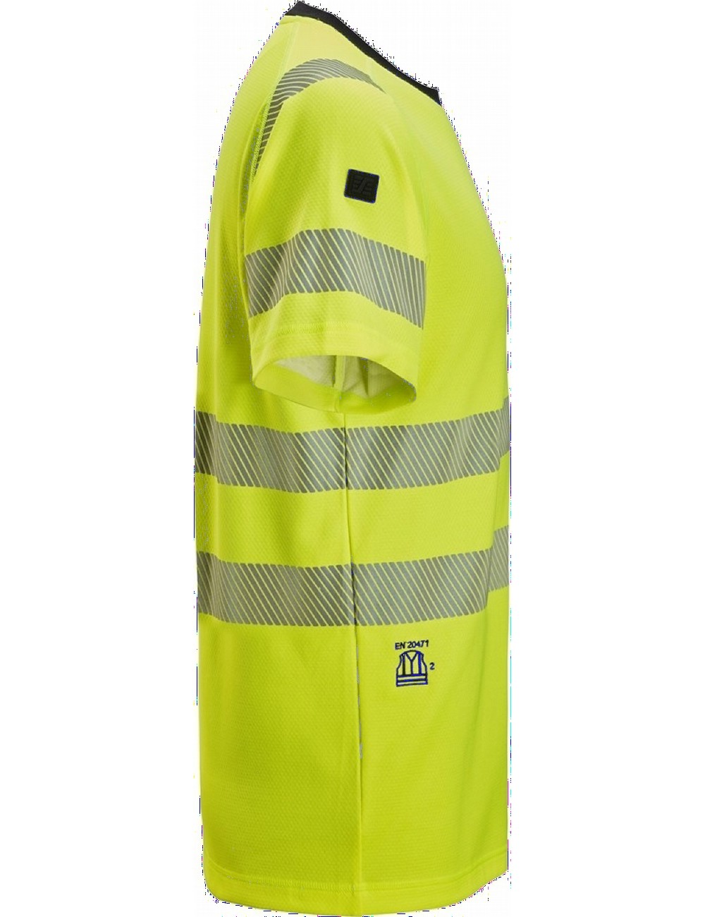 Šie šviesą atspindintys marškinėliai su segmentuotu šviesą atspindinčiu raštu sukurti siekiant užtikrinti maksimalų matomumą ir saugumą dirbant sudėtingomis sąlygomis. Pagaminti iš kvėpuojančio dvigubo mezgimo audinio, jie užtikrina puikią oro cirkuliaciją, todėl yra patogūs ir praktiški net šiltesnėmis dienomis. Tinklinė struktūra dar labiau pagerina vėdinimą, leidžia geriau reguliuoti kūno temperatūrą ir išvengti perkaitimo. Marškinėliai atitinka saugos standartus, sertifikuotus pagal EN ISO 20471/2 standartą. Marškinėlių reglano rankovės garantuoja visišką judėjimo laisvę ir leidžia geriau priglusti, pašalindamos su tradicinėmis rankovėmis susijusius apribojimus, pagerindamos komfortą įvairios veiklos metu. Marškinėlių audinys sudarytas iš 66 % perdirbto poliesterio, todėl tai yra ekologiškas produktas. Likę 34 % yra medvilnė (40s), užtikrinanti komfortą ir minkštumą. Audinio svoris 195 g/m² garantuoja patvarumą ir išlaiko savo savybes net po daugkartinio skalbimo, tuo pačiu išliekant lengvi ir laidūs orui. Dėl šių savybių šie marškinėliai yra puikus pasirinkimas tiems, kurie dirba aplinkoje, kur saugumas ir komfortas yra vienodai svarbūs.
