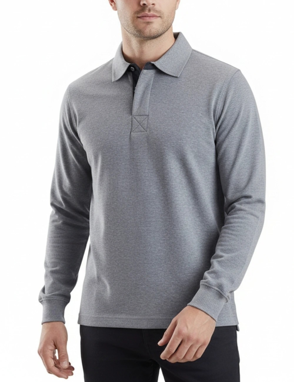 - Klasikinis regbio džemperis su polo apykakle.