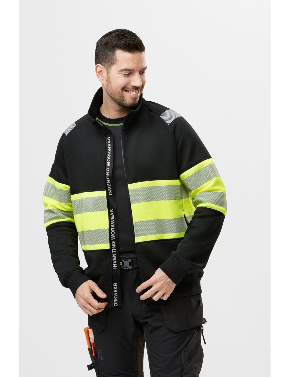 Snickers 2834“ džemperis pagamintas iš aukštos kokybės poliesterio ir medvilnės audinio, o vidus šukuotas, kad būtų patogiau ir ypač malonus šaltomis rudens dienomis. Džemperis sertifikuotas pagal EN ISO 20471 1 klasės standartą ir užtikrina puikų matomumą net ir esant prastam matomumui. Atspindinti spauda ir šviesą atspindinti juostelė po „Inventing workwear “ užtrauktuku dar labiau pagerina dėvinčiojo matomumą, o tai labai svarbu užtikrinant saugumą statybvietėje.
