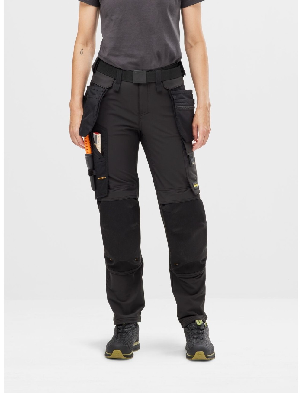 Snickers 6771 Allroundwork“ moteriškos darbo kelnės, pagamintos vien iš 4 kryptimis stretch audinio, yra puikus pasirinkimas kasdieniam darbui sudėtingomis sąlygomis. Šios kelnės, turinčios daugybę praktiškų kišenių, įskaitant užtraukiamas kišenes, kišenę telefonui ir dėklą peiliui, pasižymi ergonomišku, aptemptu kirpimu ir iš anksto suformuotomis klešnėmis. Šios kelnės puikiai tinka moterims, kurios darbe vertina ir stilių, ir funkcionalumą, ir patogumą.