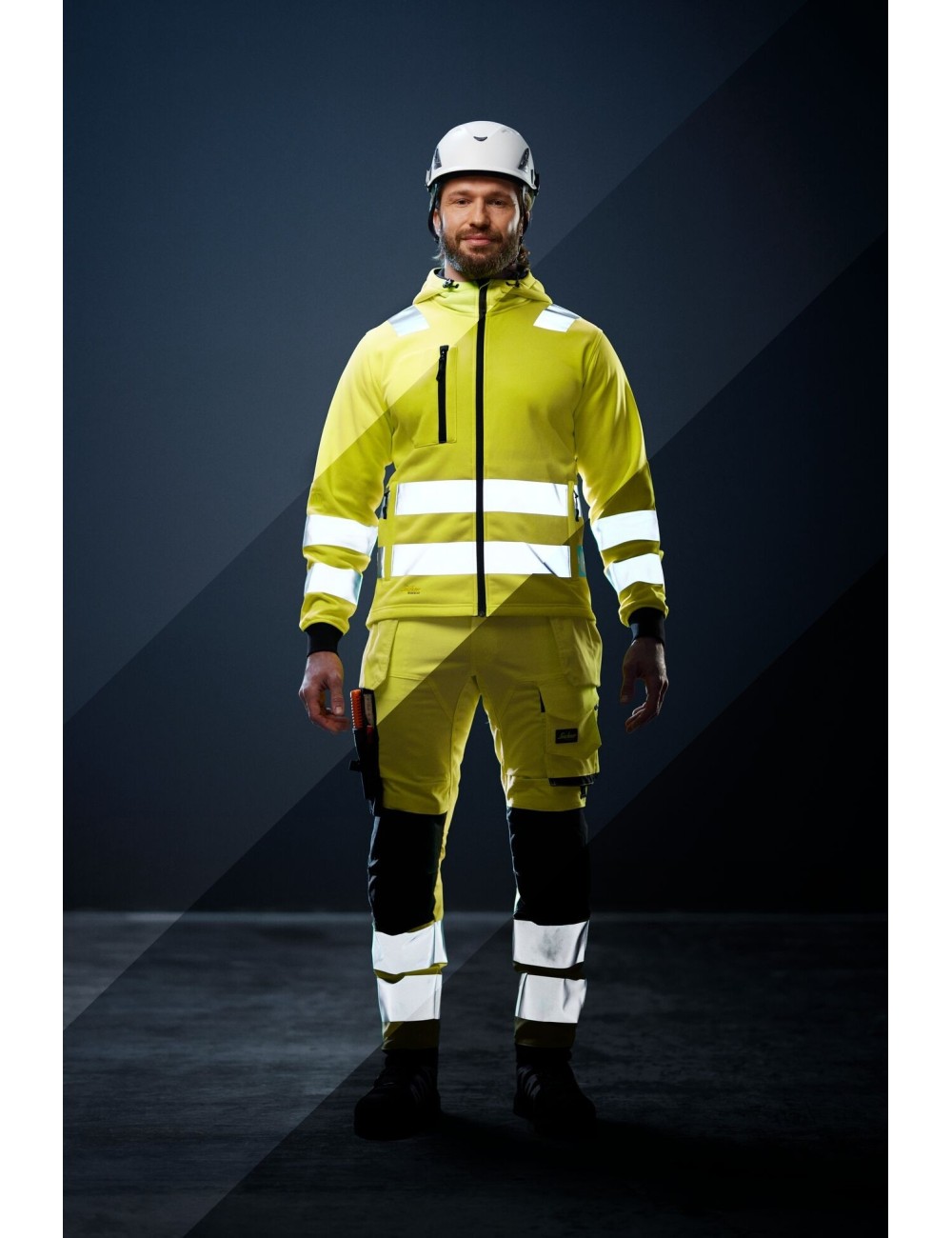 Snickers 8039“ džemperis puikiai tinka statybų pramonės darbuotojams, dirbantiems aukštyje ir kitų profesijų darbuotojams, kuriems reikalinga gerai matoma apranga. Karščiu užsandarinta šviesą atspindinti juosta garantuoja puikų matomumą, ką patvirtina EN ISO 20471/2/3 sertifikatas. Tai leidžia džemperį naudoti vietoj šviesą atspindinčios liemenės. Kad nepatektų šaltas oras, džemperis turi prailgintą nugarą ir reguliuojamą juosmens juostą. Krūtinės kišenė užsegama tvirtu užtrauktuku ir joje yra ženklelio laikiklis. Be to, šoninės kišenės, taip pat su užtrauktukais, garantuoja saugų smulkių daiktų laikymą, užtikrinant visišką funkcionalumą ir komfortą.