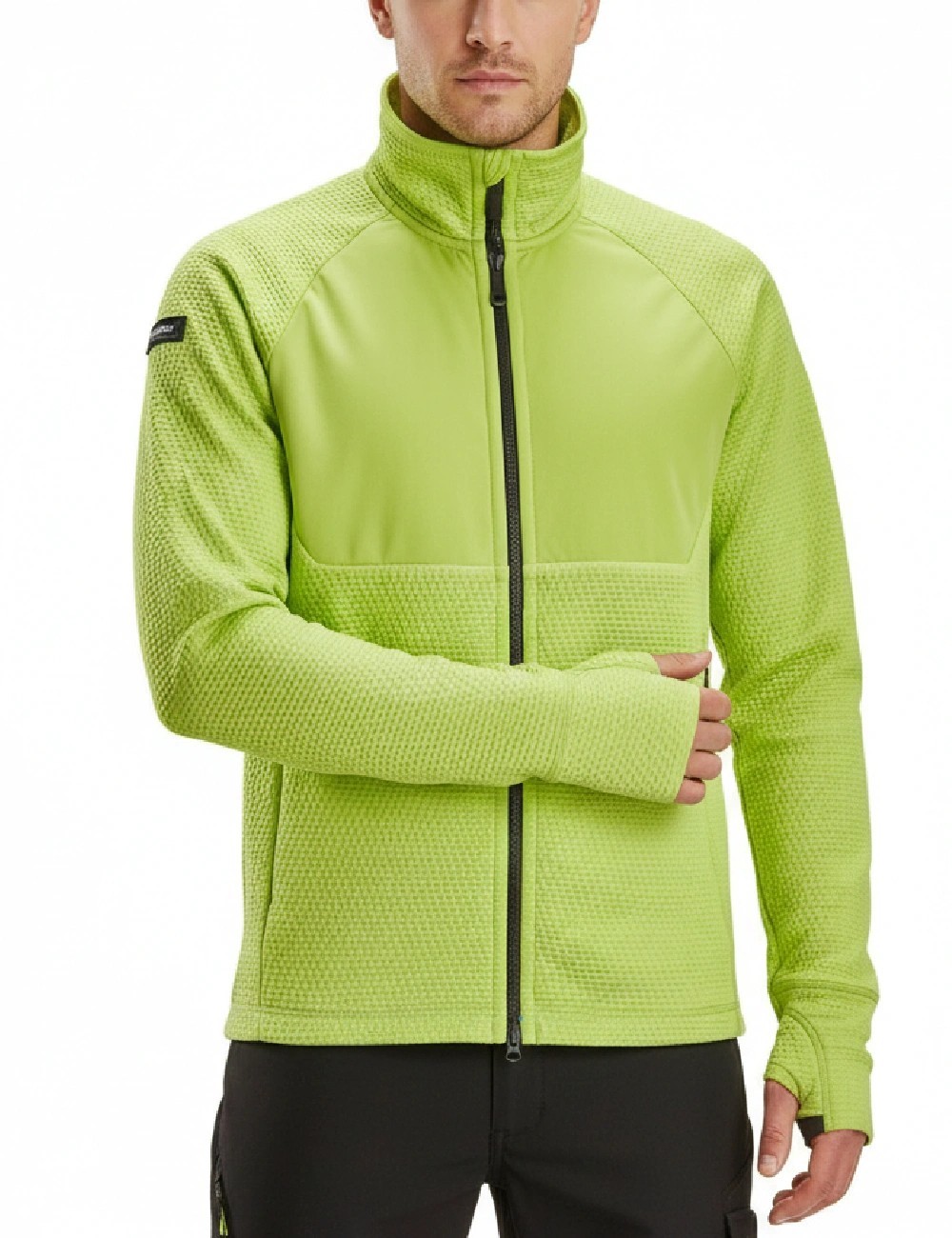 - Vėjui nelaidi softshell įsiuvas ant krūtinės – papildoma apsauga nuo vėjo.