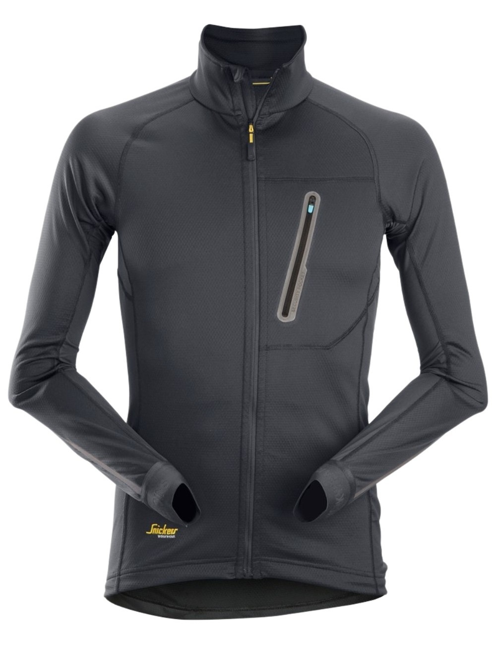 Snickers LiteWork darbinis džemperis pasiūtas iš tampraus audinio. Funkcinė medžiaga pasižymi tinklinėmis įsiuvomis, užtikrinančiomis geresnę ventiliaciją. Priglundantis kirpimas apglėbia kūną nevaržomas judesių. Džemperis turi aukštą apykaklę, užsegimą užtrauktuku ir kišenę ant krūtinės. Vietoj audinio etiketės viduje yra atspausdinta etiketė. Sertifikuotas audinys apsaugo nuo kenksmingų UV spindulių (UPF 50+). Įkvėptas sportinės aprangos, šis džemperis puikiai tinka kaip vidurinis arba viršutinis sluoksnis šiltesnėmis dienomis. Dėl savo našumo jis tinka tiek darbui, tiek įvairiai veiklai.