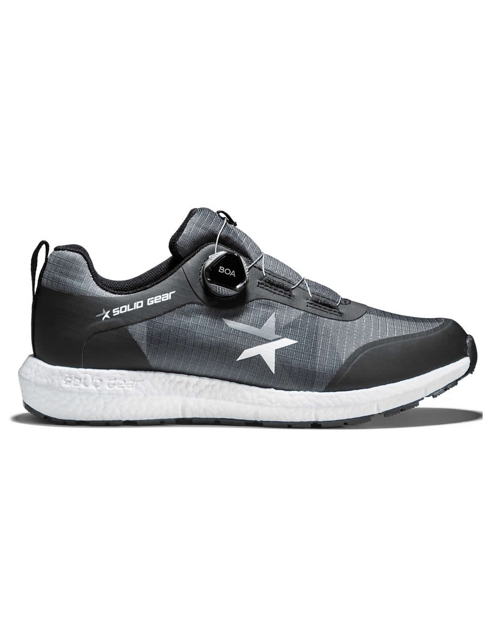 Solid Gear Dynamo – tai unikalus batų, skirtų bėgimui bekele ir darbui, derinys. ETPU vidpadis ir kvėpuojantys PU putplasčio vidpadžiai užtikrina komfortą. Vidpadžiai pagaminti iš perdirbtų medžiagų ir yra labai laidūs orui. Šių darbo batų guminis padas yra atsparus aliejui ir neslidus, užtikrinantis puikų sukibimą ir stabilumą einant. Šio modelio viršus pagamintas iš plyšimui atsparios CORDURA® ripstop medžiagos. Šių darbo batų pamušalas pagamintas iš tinklelio.