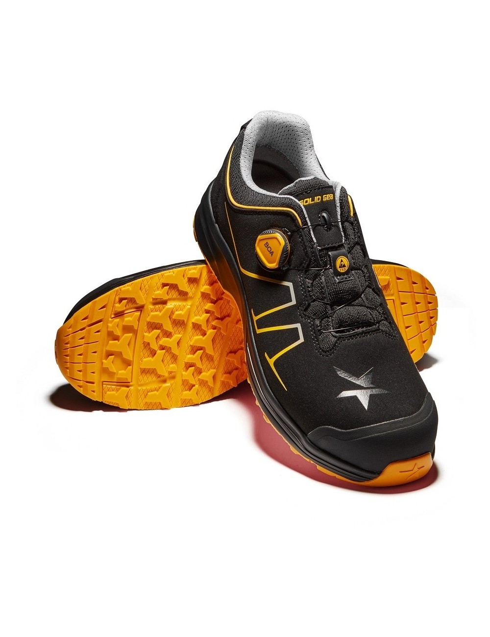 Solid Gear Oasis užtikrina puikią amortizaciją ir apsaugą. Jie turi kompozicinę stiklo pluošto nosį ir metalinį, pradūrimams atsparų vidpadį. Šis modelis yra juodos spalvos su kontrastingais oranžiniais įdėklais, suteikiančiais sportišką išvaizdą. Solid Gear logo yra ant kulno ir viršutinės dalies. Viršutinė dalis pagaminta iš labai minkšto mikropluošto su TPU sutvirtinimais. Guminis padas yra neslystantis ir atsparus alyvai. Vidpadis pagamintas naudojant PU įpurškimo technologiją, kartu su kvėpuojančiu poliuretano putplasčio įdėklu ir drėgmę sugeriančia viršutine medžiaga, užtikrinančia išskirtinį komfortą. Šie darbo batai turi lengvai užrišamą BOA ® Fit sistemą, užtikrinančią saugų prigludimą. BOA užsegimas yra išorinėje bato pusėje.