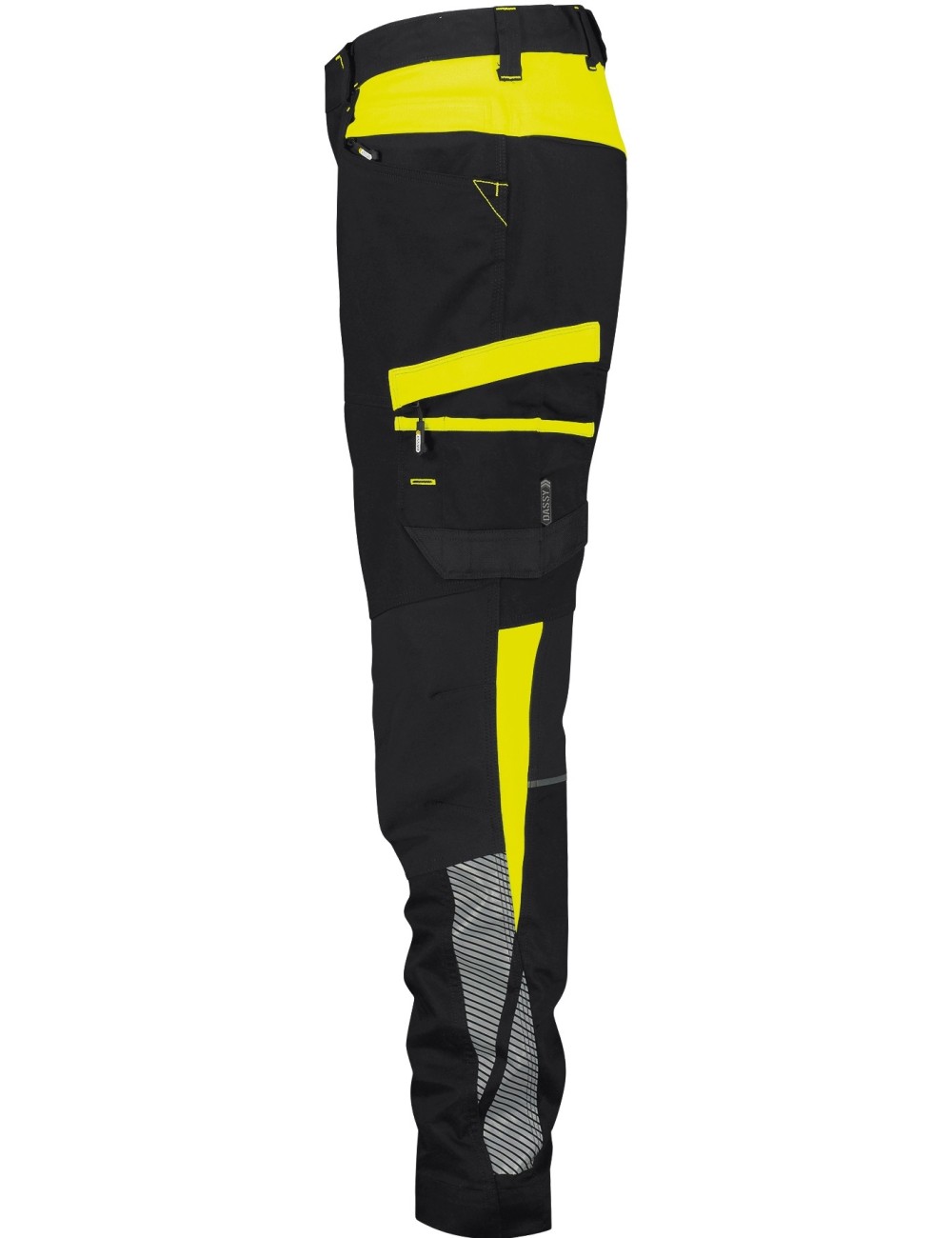 Te spodnie robocze to połączenie bezpieczeństwa i wygody. Dzięki elastycznym wstawkom i dopasowanemu krojowi zapewniają pełną swobodę ruchu. Wzmocnienia Cordura® zwiększają trwałość, a segmentowe elementy odblaskowe poprawiają widoczność. Przedłużany dół nogawek i regulowana talia umożliwiają idealne dopasowanie.
