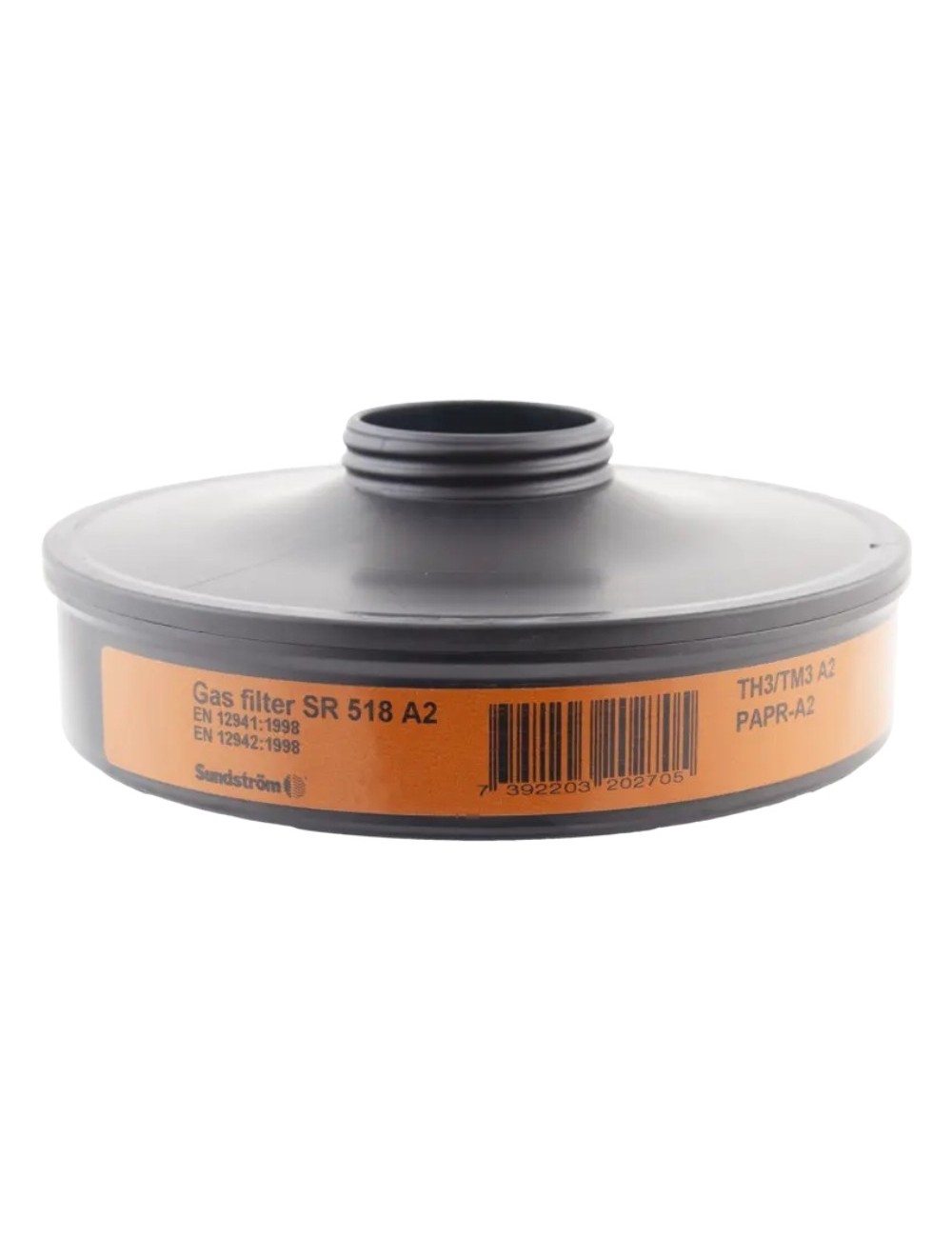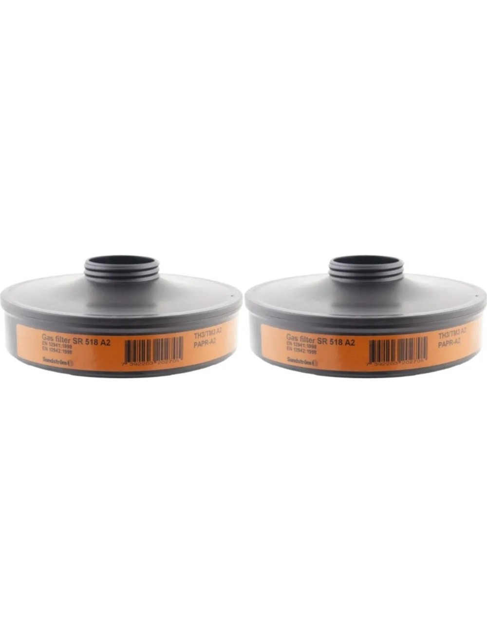 Sundstrom SR 518 A2“ filtras, skirtas SR 500/ SR 500 EX filtro įrenginiui, skirtas apsaugai nuo organinių dujų ir garų, pasižymintis dideliu efektyvumu ir ilgaamžiškumu. Filtro įrenginiui reikalingi dviejų filtrų komplektas. Filtras apsaugo nuo organinių dujų ir garų, pvz., tirpiklių, kurių virimo temperatūra aukštesnė nei +65 °C. Norint sujungti SR 518 dujų filtrą su P3 dulkių filtru, reikia įsigyti papildomą SR 510 filtrą.