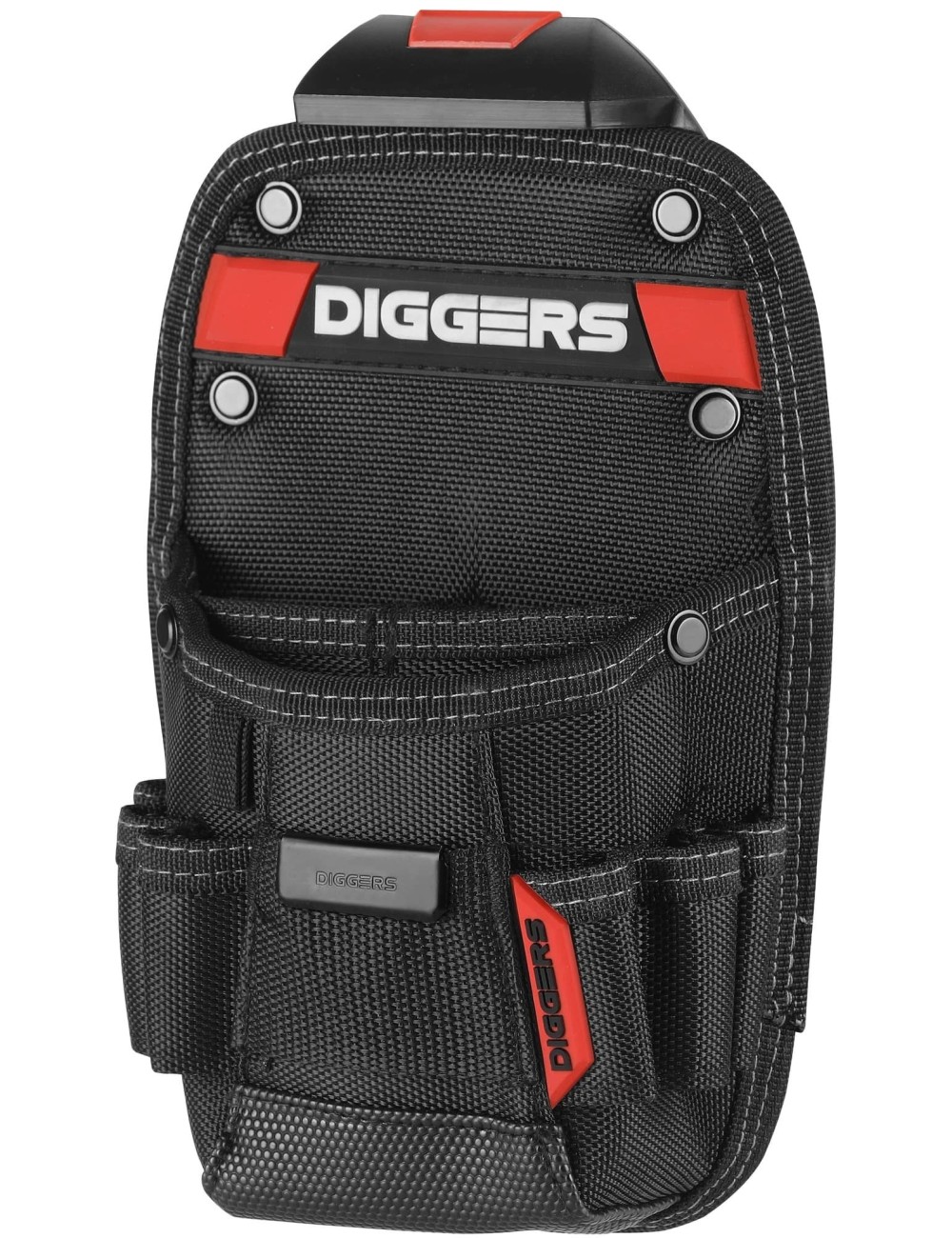 Kieszeń narzędziowa Diggers Technician Pouch wykonana jest z wysokiej jakości, trwałego materiału. Doskonale sprawdzi się w każdych warunkach pracy. Wyposażona jest w system mocujący Quick Click, który pozwala na łatwe i szybkie mocowanie toreb narzędziowych do pasa monterskiego za pomocą wytrzymałego klipsa z ABS-u. Model Technician Pouch wyposażony jest w cztery kieszenie, które zostały zaprojektowane z myślą o przechowywaniu narzędzi z długimi uchwytami. Doskonale sprawdzi się jako samodzielne akcesorium. Przypinając jednak torbę do pasa wszystkie najpotrzebniejsze narzędzia będą zawsze pod ręką.